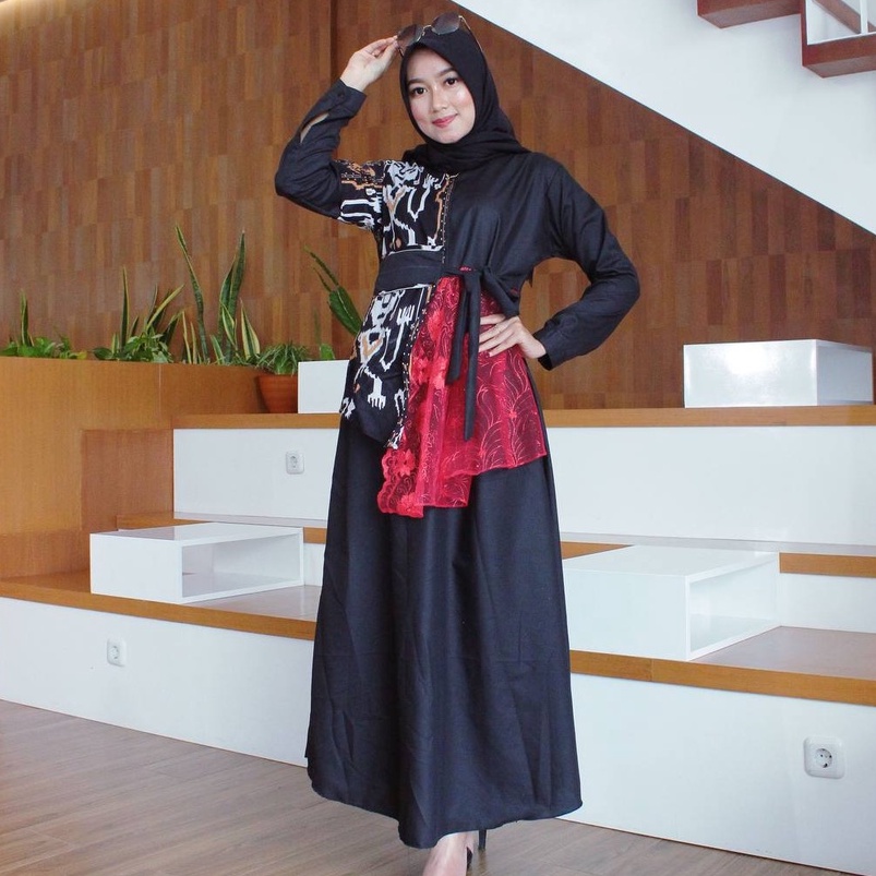 Adik model kebaya jumputan merah maron premium terbaru cocok untuk sekolah.